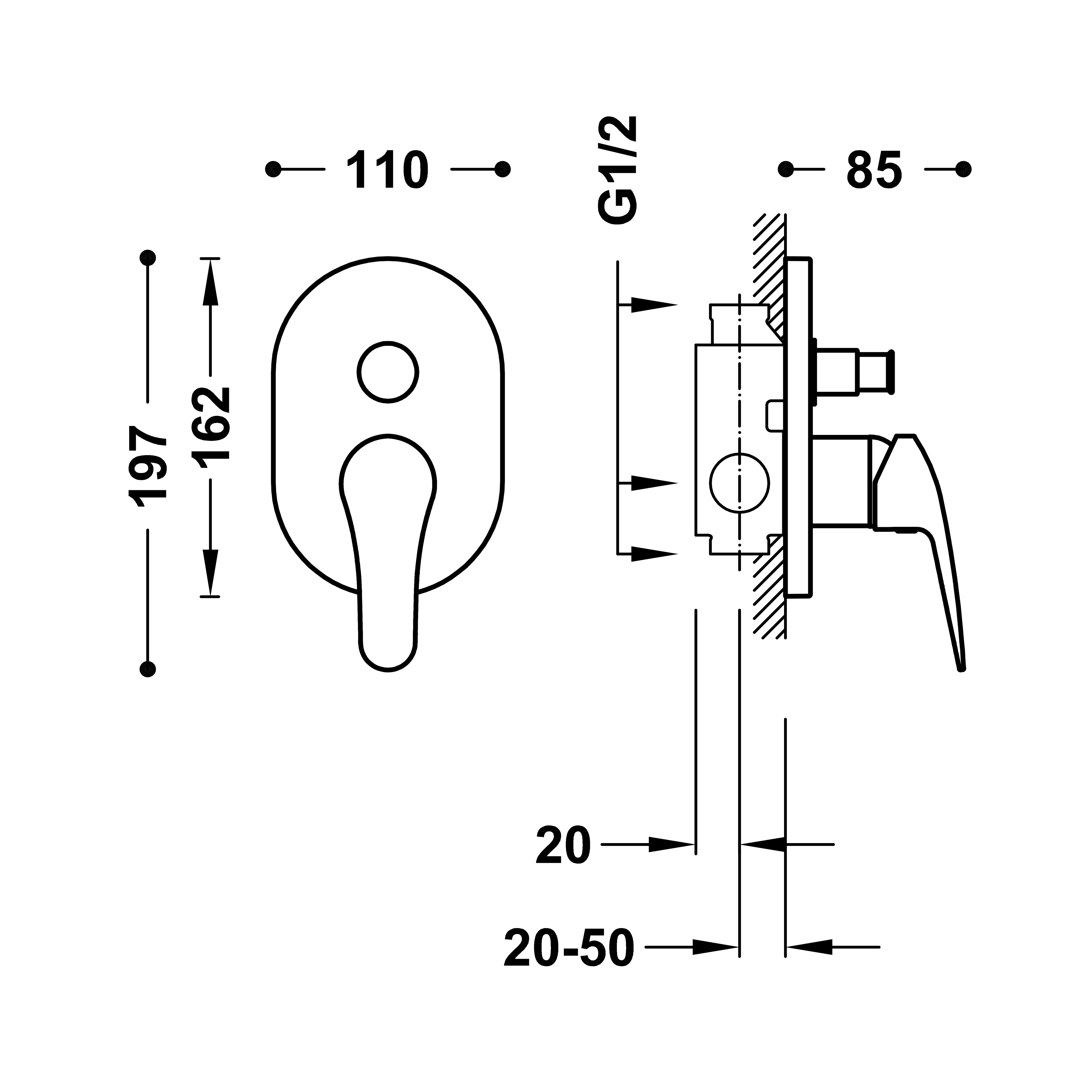 Jednouchwytowa bateria podtynkowa (2-drożna)