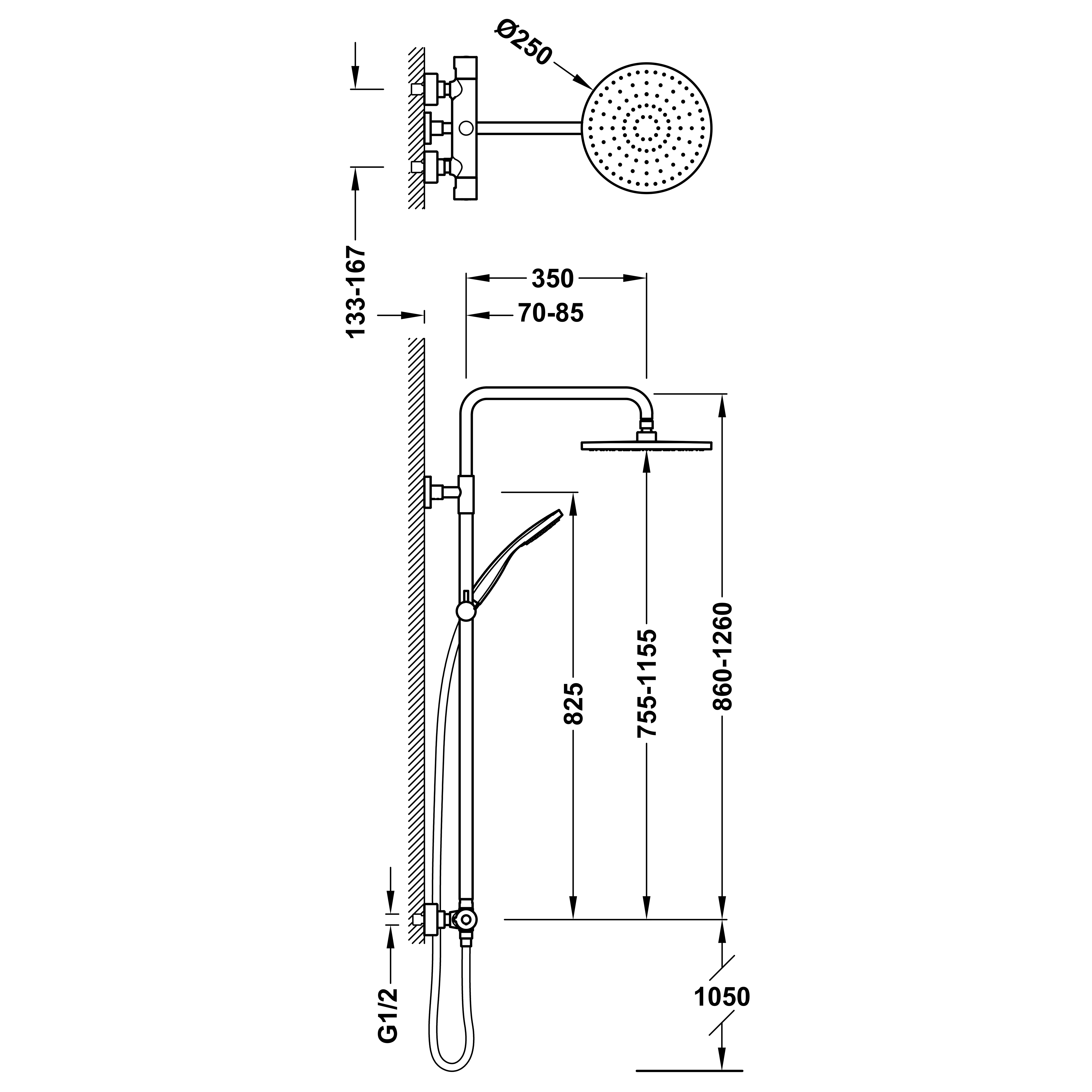 BASE PLUS Zestaw baterii termostatycznej naściennej 2-drożnej prysznicowej-21639502NM