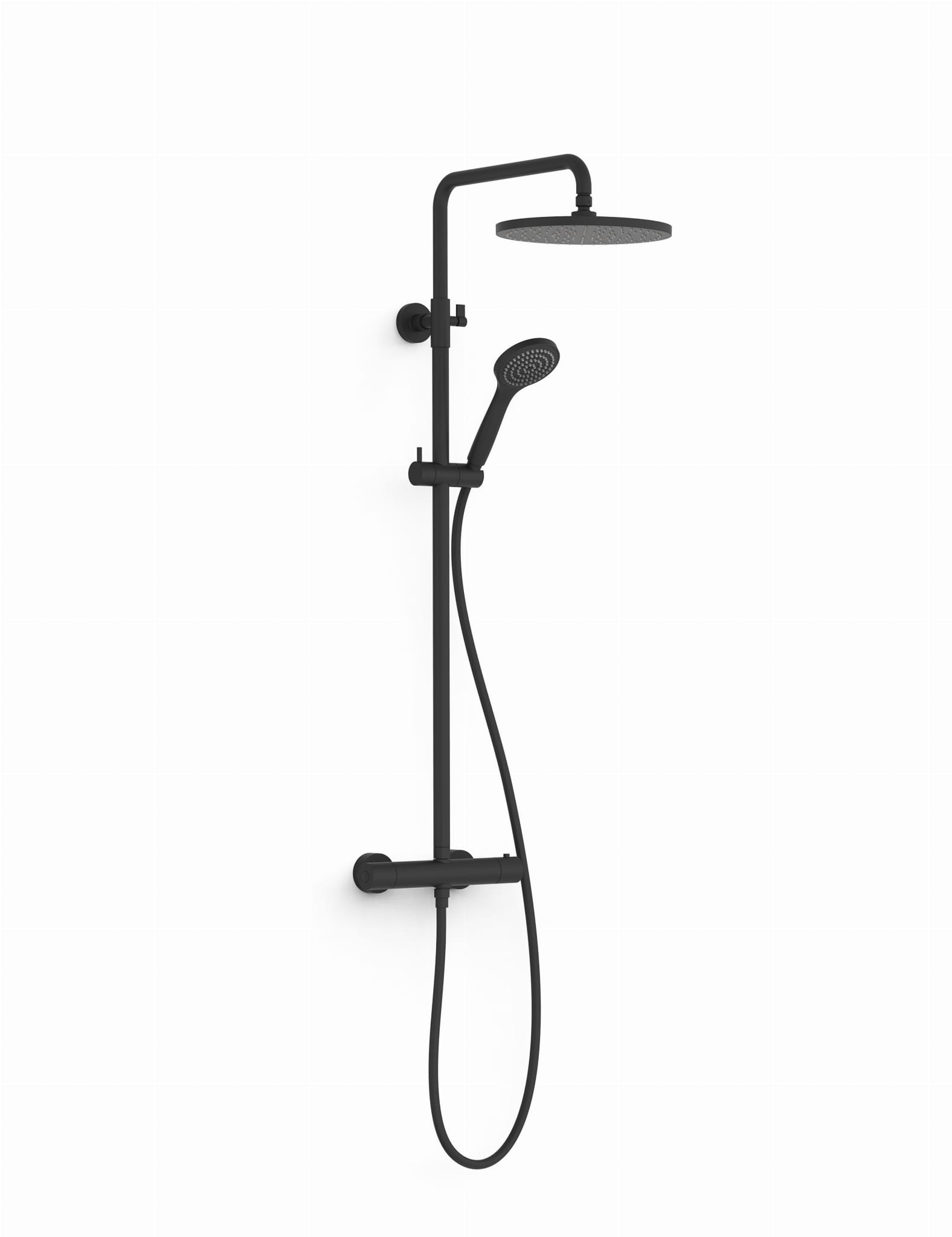Base-Tres Plus Zestaw prysznicowy z deszczownicą 25 cm i baterią termostatyczną czarny Black Showers Tres 21639502NM
