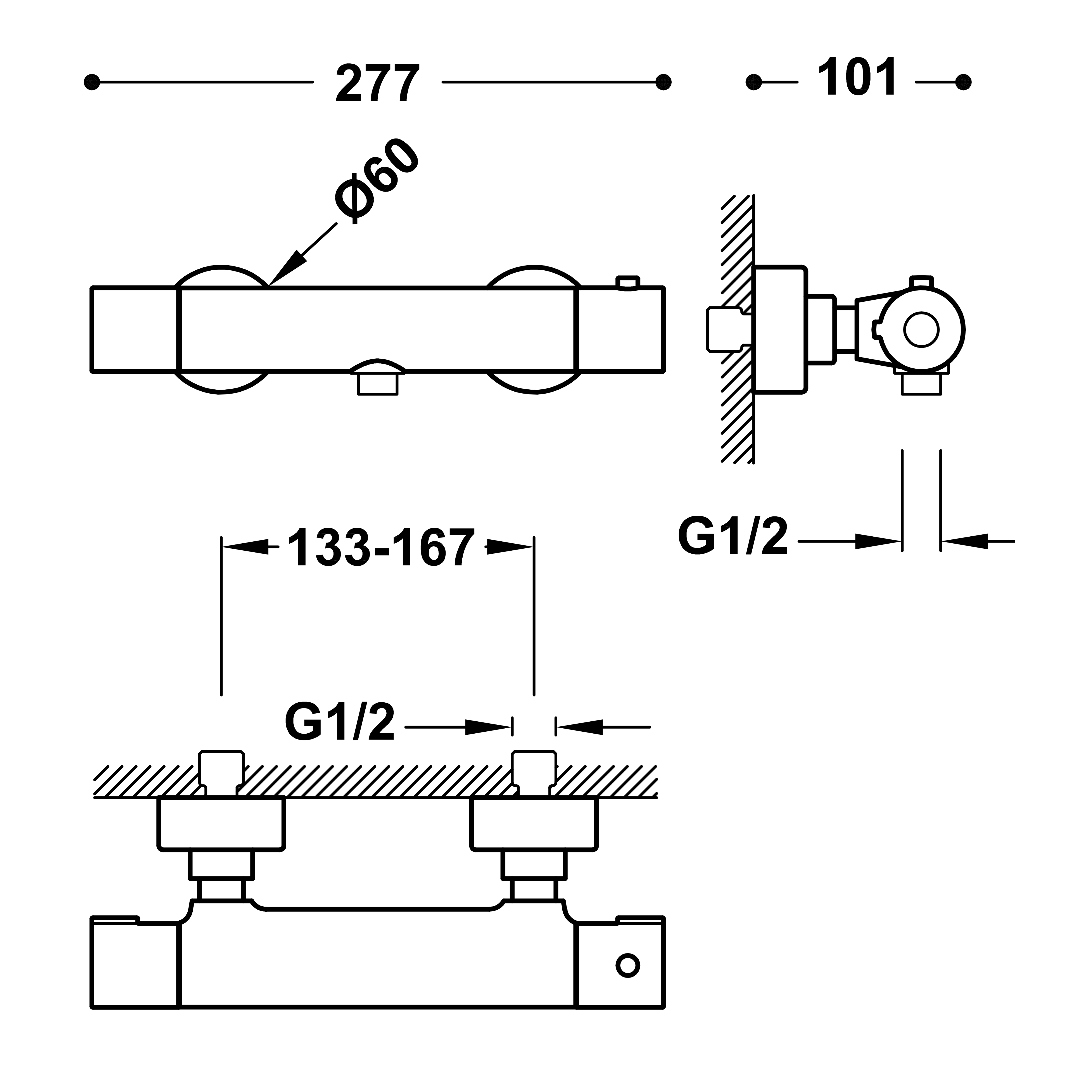 Base-Tres Plus bateria termostatyczna natryskowa chrom. 21616401