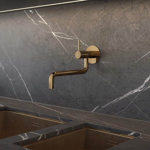W luksusowej armaturze Y każdy detal powiela kształt koła tworząc elegancką i ponadczasową formę. Minimalistyczny design kolekcji daje maksymalne możliwości aranżacyjne. Montaż podtynkowy gwarantuje łatwość czyszczenia strefy zmywania, a obrotowa wylewka zapewnia komfort użytkowania.