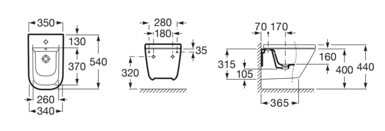 REF: A357476S00Bidet podwieszany z ukrytymi mocowaniami