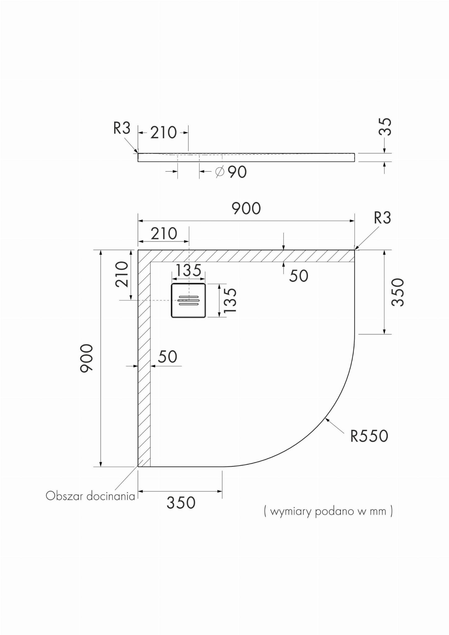 Brodzik Schedpol Protos White Stone 90x90x3,5 R55 Stabilsound Plus® /// 3SP.P1O-9090/B/ST-M1/B/ST