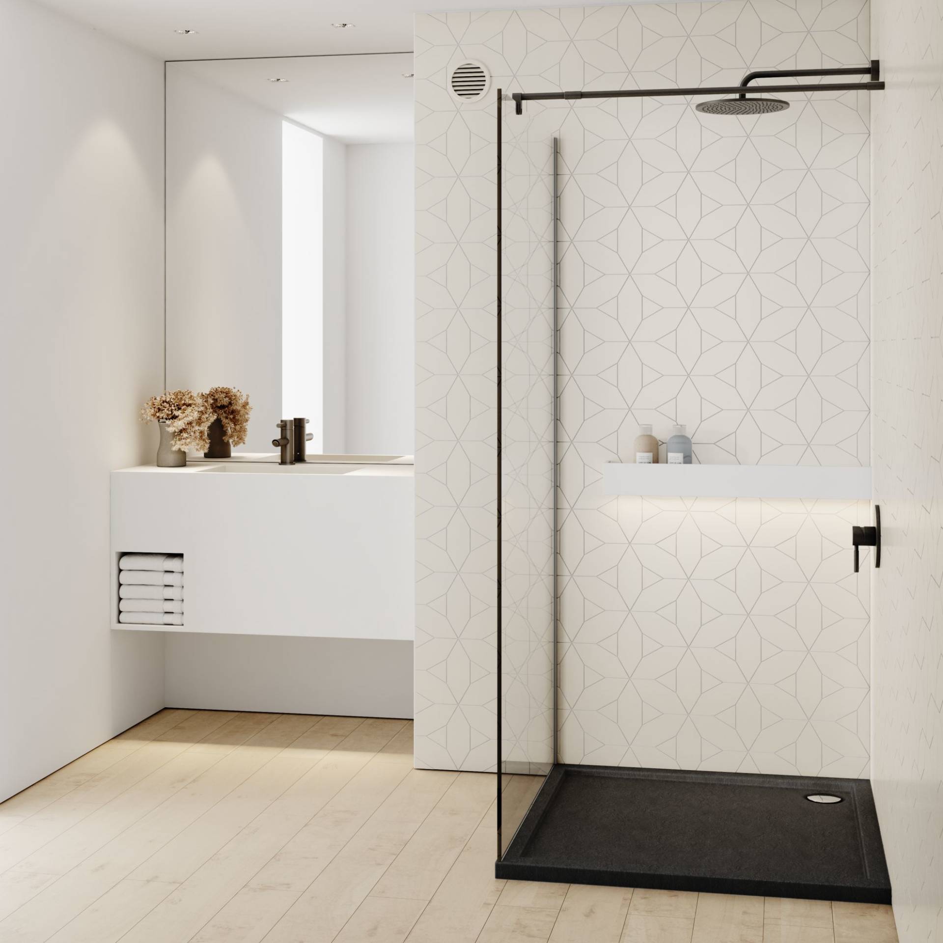 z minimalną spoina silikonową dzięki idealnie pionowym ściankom panelu bocznego oraz wyostrzonym krawędziom brodzika.