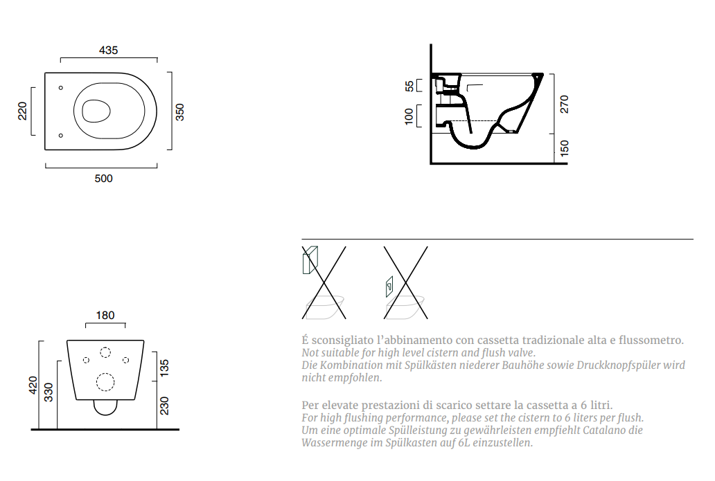 Producent CatalanoCatalano Italy Miska WC 52 cm 0711520001+ deska 0751100001 + mocowania. Silentech