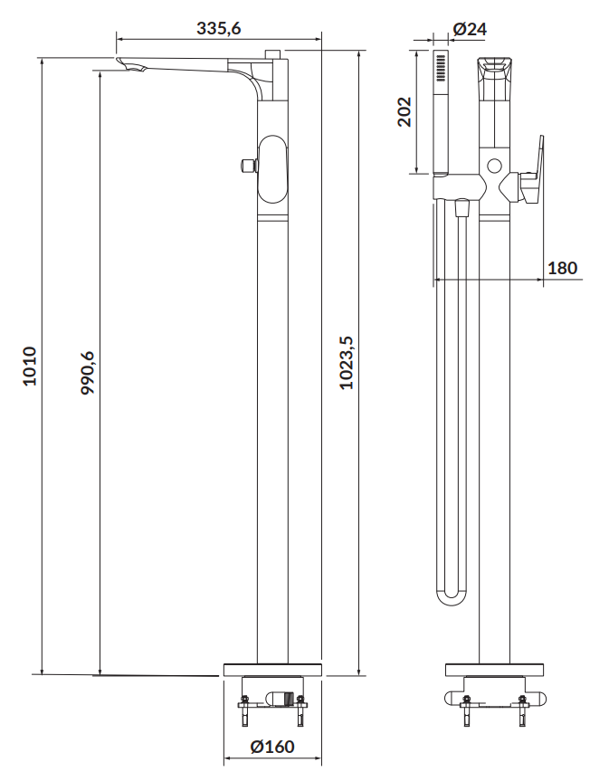 BATERIA WANNOWO-NATRYSKOWA WOLNOSTOJĄCA CREA CHROM