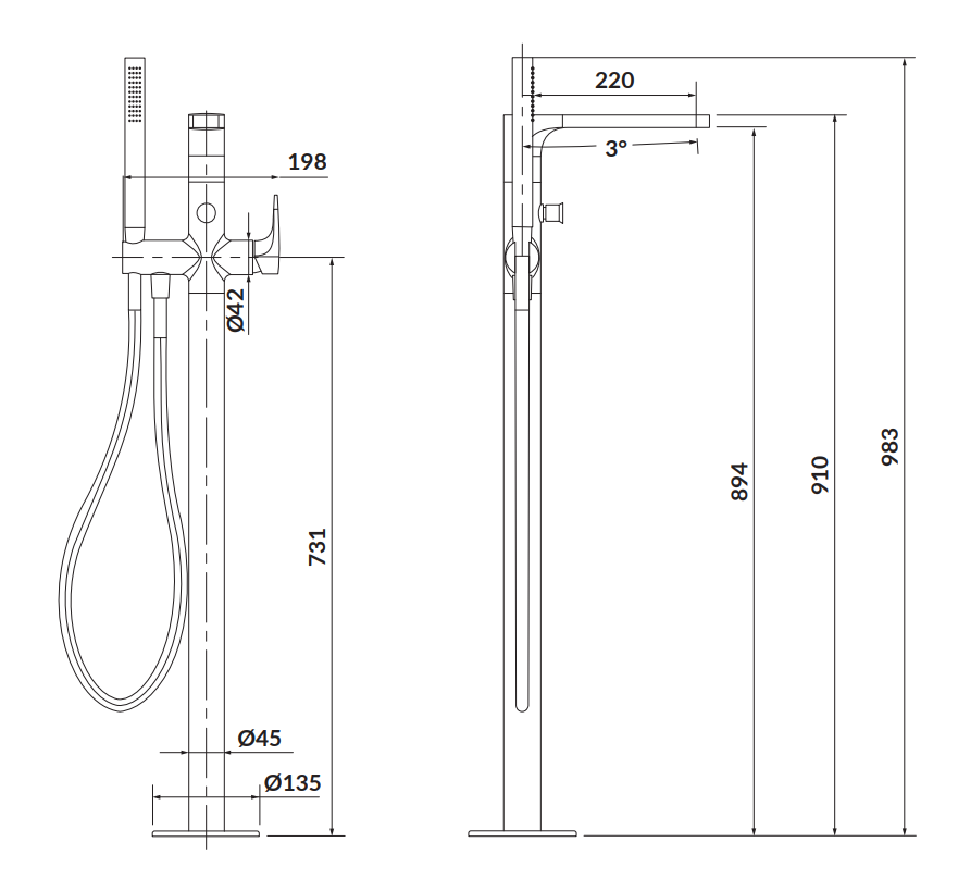 Producent OmniresBateria wannowa wolnostojąca, kompletna na pojedynczej nodze. Omnires Apure AP2233CR