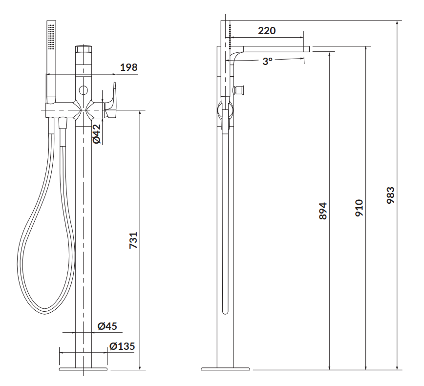 BATERIA WANNOWO-NATRYSKOWA WOLNOSTOJĄCA INVERTO ZŁOTA, UCHWYTY 2 DESIGN IN 1: ZŁOTE