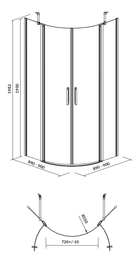 KABINA PRYSZNICOWA PÓŁOKRĄGŁA MODUO 90 x 90 X 195