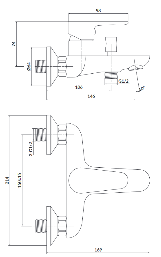 Cersanit LIBRA bateria wannowo-natryskowa ścienna Chrom. S951-406