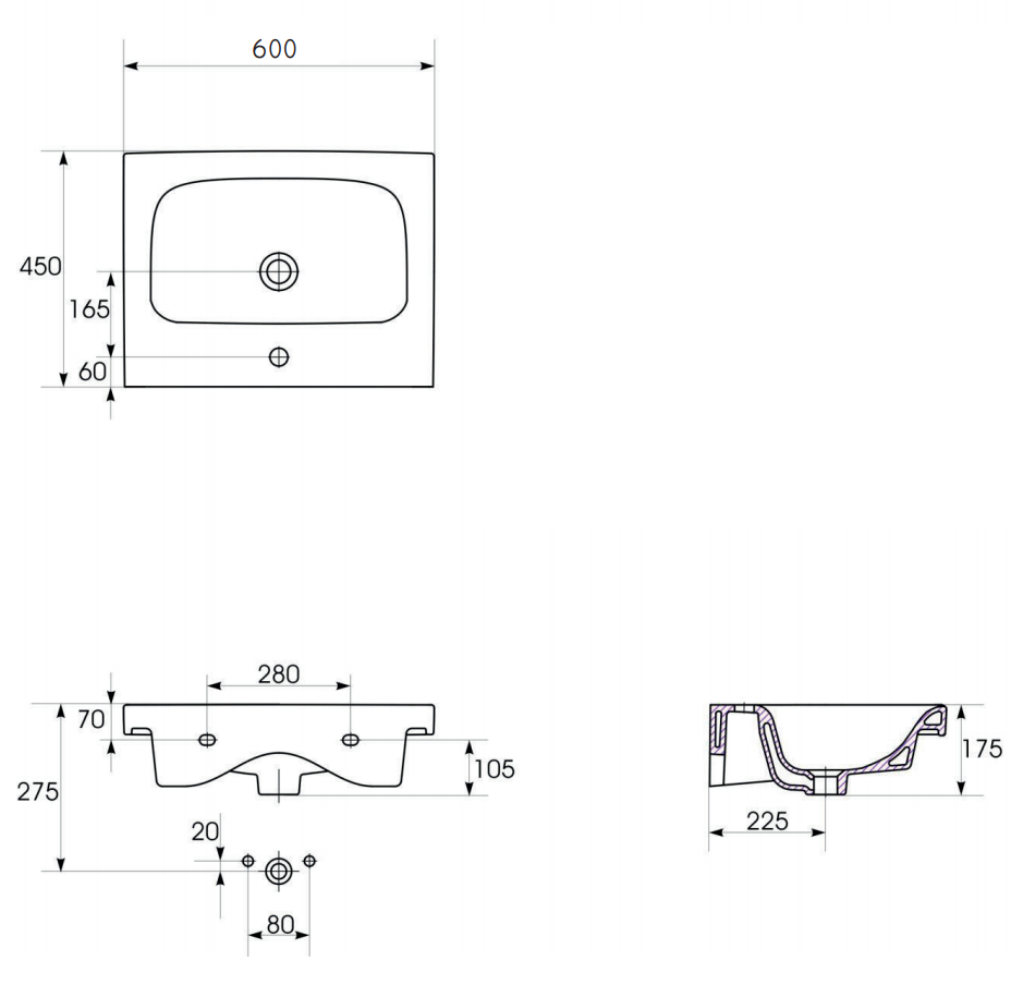 Umywalka meblowa ceramiczna MODUO oferowana jest w kilku rozmiarach. Posiada centralny otwór na armaturę i przelew. Dostosowana jest do montażu z szafkami z serii MODUO, STILLO, CITY, COLOUR, LARA, CREA, SMART. Można ją montować również bezpośrednio do ściany.