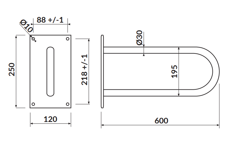UCHWYT ŚCIENNY DO WC/UMYWALKI 60CM STAŁY