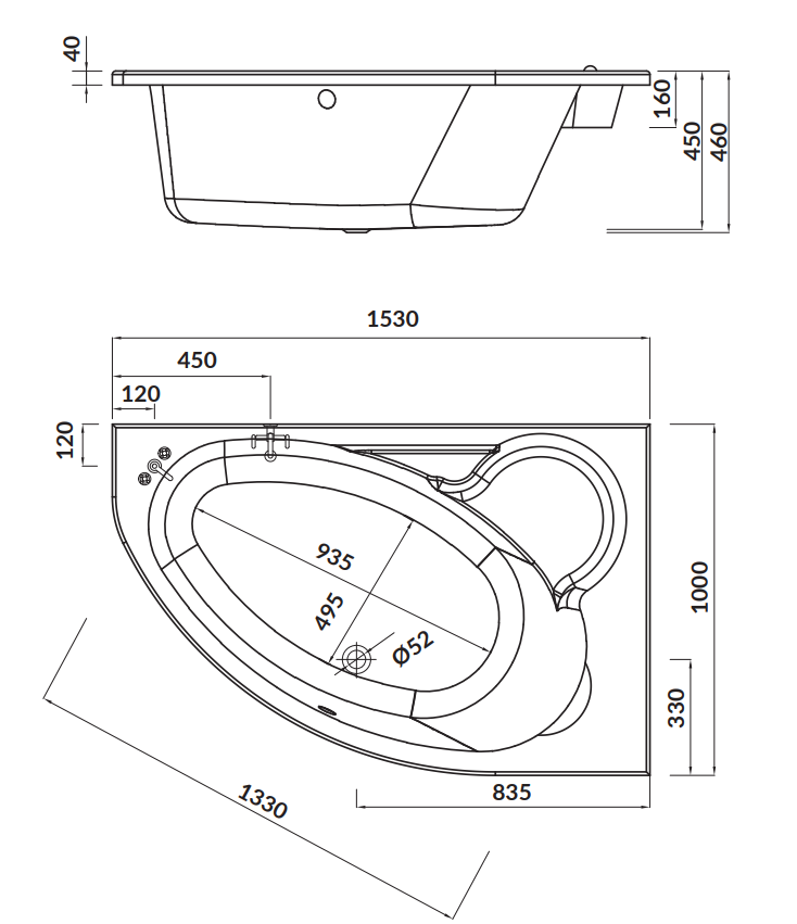 WANNA ASYMETRYCZNA KALIOPE 153x100 PRAWA