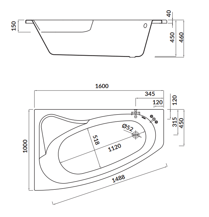 WANNA ASYMETRYCZNA SICILIA 160x100 LEWA