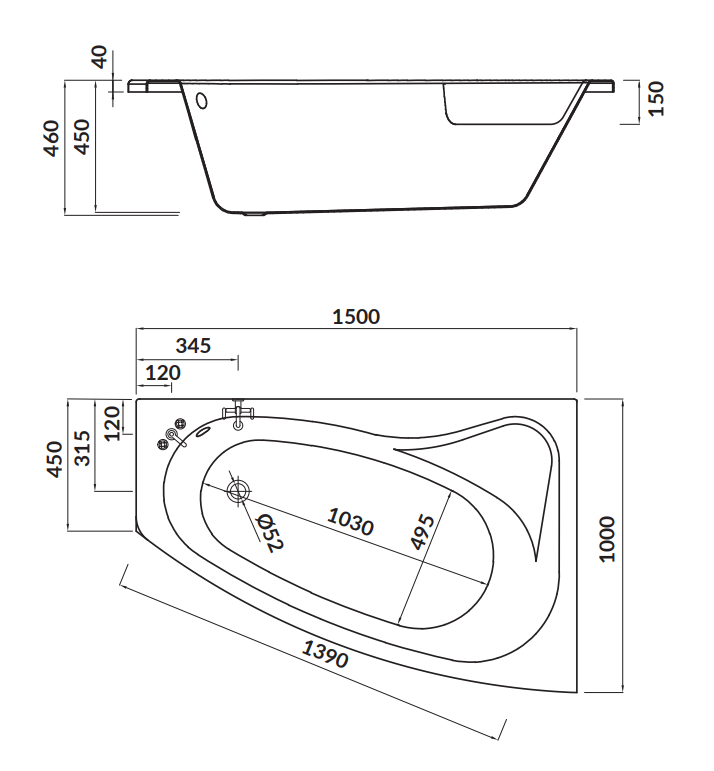 Cersanit Wanna Asymetryczna Sicilia New Prawa 150x100 Cw. S301-096