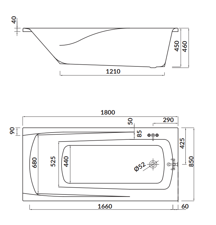 WANNA PROSTOKĄTNA ZEN BY CERSANIT 180x85
