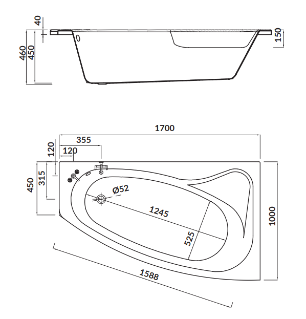 Cersanit Wanna asymetryczna Sicilia New Prawa 170x100. S301-098