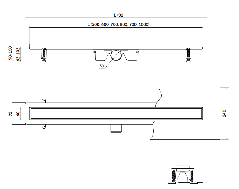 Cersanit odpływ liniowy z rusztem dwustronnym TAKO 70 cm czarny S907-018