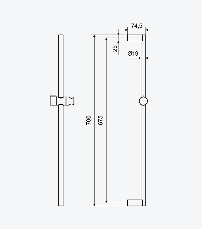 Elegancki i funkcjonalny drążek prysznicowy o długości 70 cm w klasycznym wykończeniu, który doda blasku każdej łazience. Wykonany z wysokiej jakości materiałów zapewnia trwałość i odporność na korozję. Uchwyt na słuchawkę prysznicową jest regulowany, co pozwala na wygodne dostosowanie wysokości i kąta strumienia wody, idealnie odpowiadając potrzebom każdego użytkownika. Prosty w montażu i łatwy w czyszczeniu, drążek ten jest doskonałym wyborem dla tych, którzy cenią sobie komfort i styl.