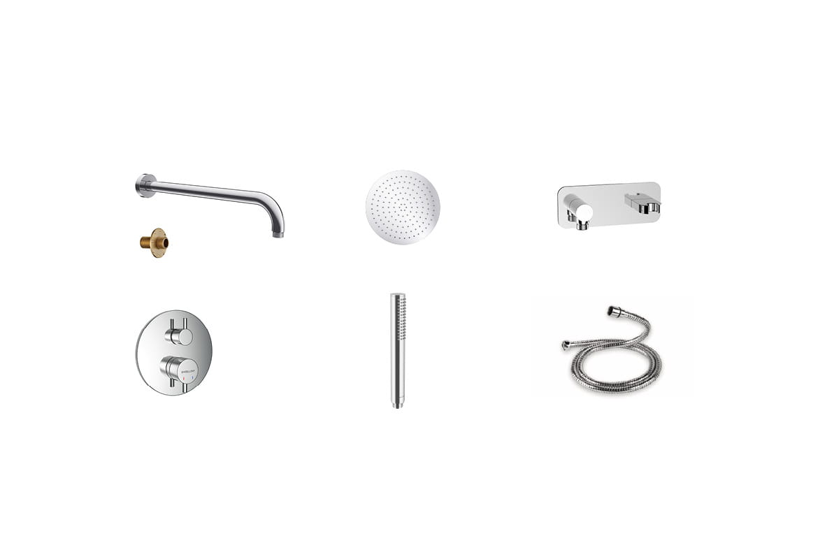 W skład zestawu prysznicowo-wannowego podtynkowego z 2/3 funkcjami wchodzą: