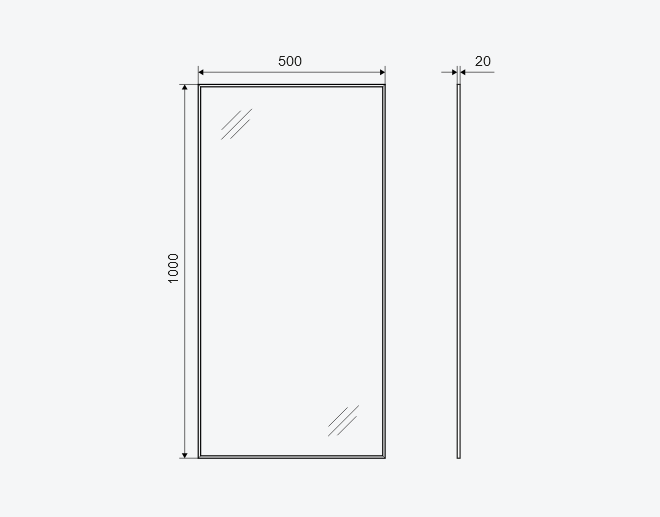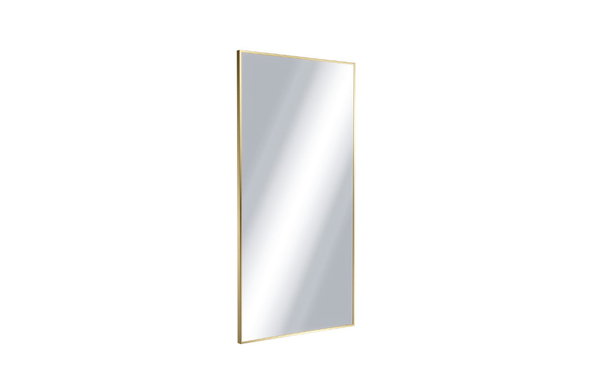Tafla szkła jest dodatkowo zabezpieczona podklejoną z tyłu folią ochronną, która w razie stłuczenia lustra niweluje możliwość rozpryśnięcia się odłamków szkła i skaleczenia przez użytkownika. Dostępne rozmiary luster: 1000 x 500 mm oraz 800 x 600 mm. Dostępne kolory ramy: anoda czarny mat lub złota szczotkowana oraz lakierowany biały mat.