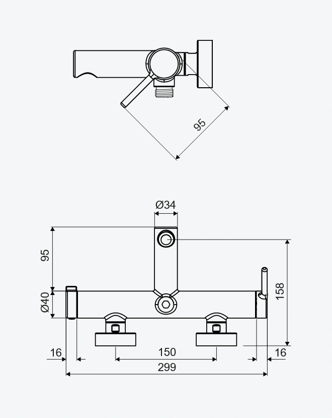 Bateria wannowa ścienna posiada standardowy rozstaw mocowań (150mm) oraz komplet krzywek montażowych. Dzięki temu bateria może być instalowana do każdej prawidłowo wykonanej instalacji pod baterię wannową. Posiada wysięg wylewki 158mm. Bateria posiada mechaniczny przełącznik funkcji z prawej strony korpusu oraz pokrętło regulacji ciśnienia oraz temperatury wody po prawej stronie. Jej idealnym uzupełnieniem będą zestawy wannowe w kolorze chrom.