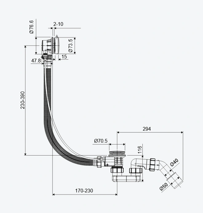 Łatwość montażu i obsługi: Simple 2.0 występuje w dwóch rozmiarach; z cięgnem 57 cm i 80 cm- co pozwala wykorzystać produkt do większości wanien do zabudowy dostęnych w ofercie Excellent. Montaż jest prosty i intuicyjny, co oznacza, że możesz się cieszyć nowym syfonem bez konieczności długotrwałych lub skomplikowanych instalacji.