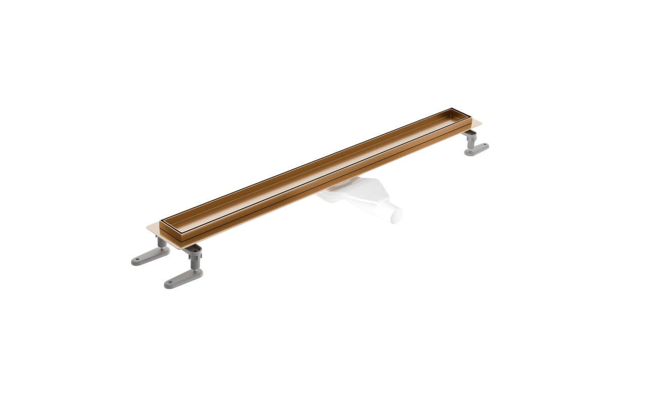 Odpływ liniowy Stilio łączy w sobie minimalizm i praktyczność użytkową. Wykonany został z wysokiej jakości stali nierdzewnej, pokrytej powłoką PVD w kolorze miedzianym. Odpływ posiada wygodną regulację nóżek w pionie i w poziomie w zakresie do 30 mm. Szeroki wybór dostępnych rozmiarów odpływów i wersji rusztu daje możliwość dostosowania do wielkości kabiny oraz wymiarów płytek, co znacznie ułatwia planowanie układu już na etapie projektowania. Produkt polecany jest do instalacji wraz z kabinami Excellent typu walk-in: Ortigo lub Vidoq.