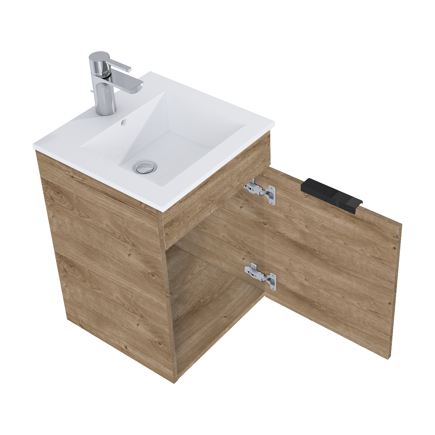 Set łazienkowy składający się z szafki i ceramicznej umywalki.