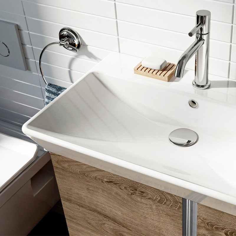 Set łazienkowy składający się z szafki i ceramicznej umywalki.