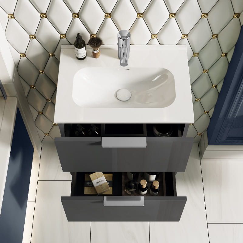 Set łazienkowy składający się z szafki i ceramicznej umywalki.