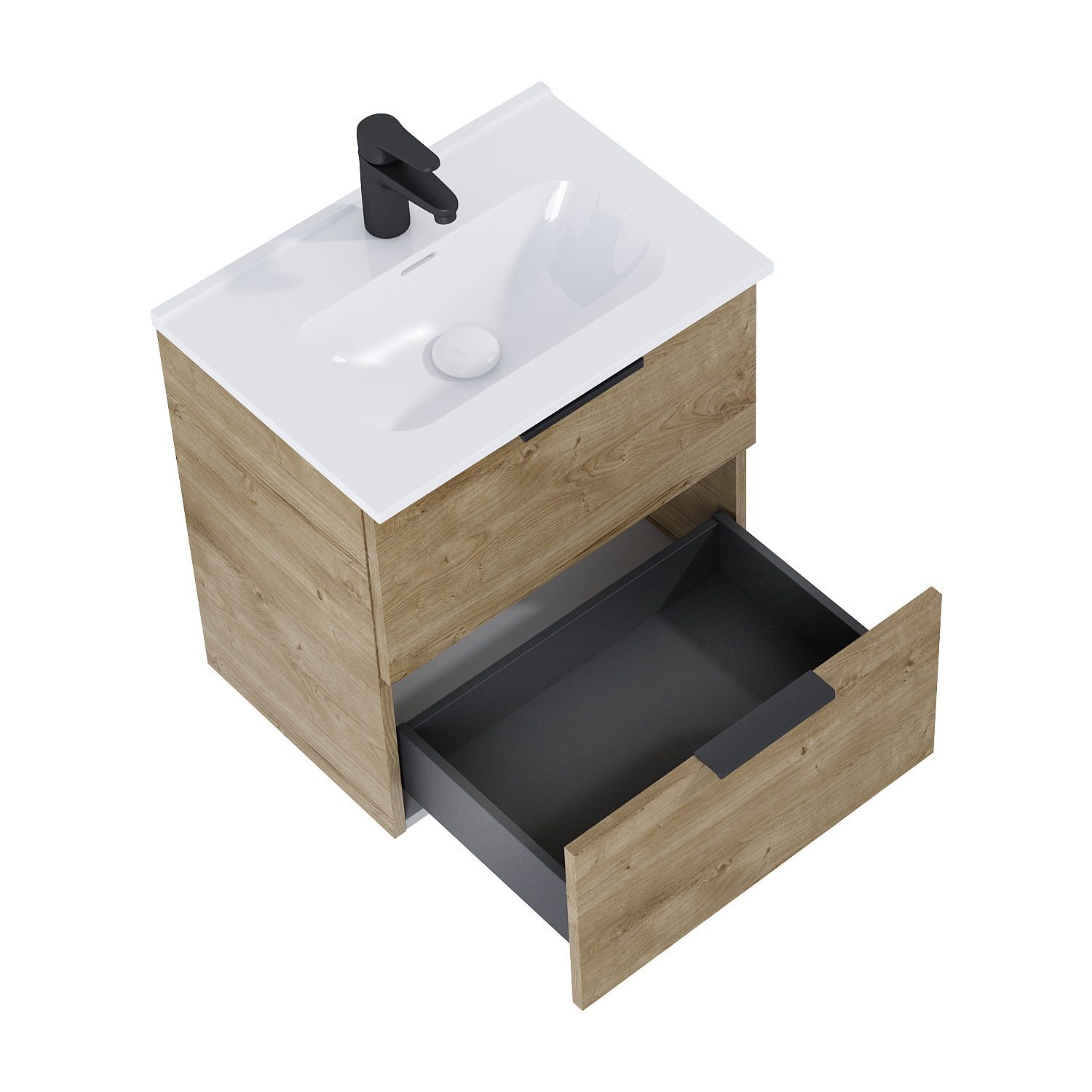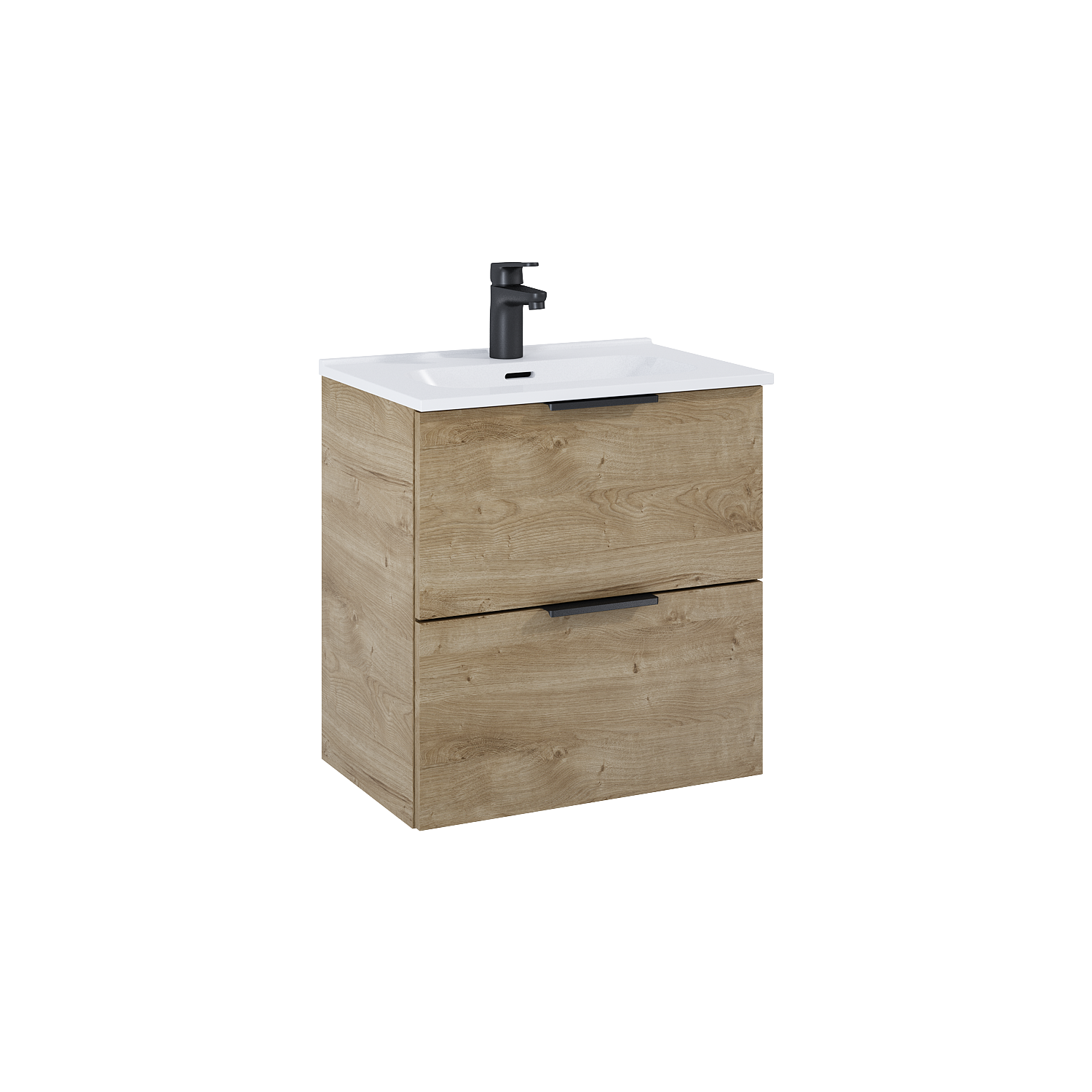 Set łazienkowy składający się z szafki i ceramicznej umywalki.