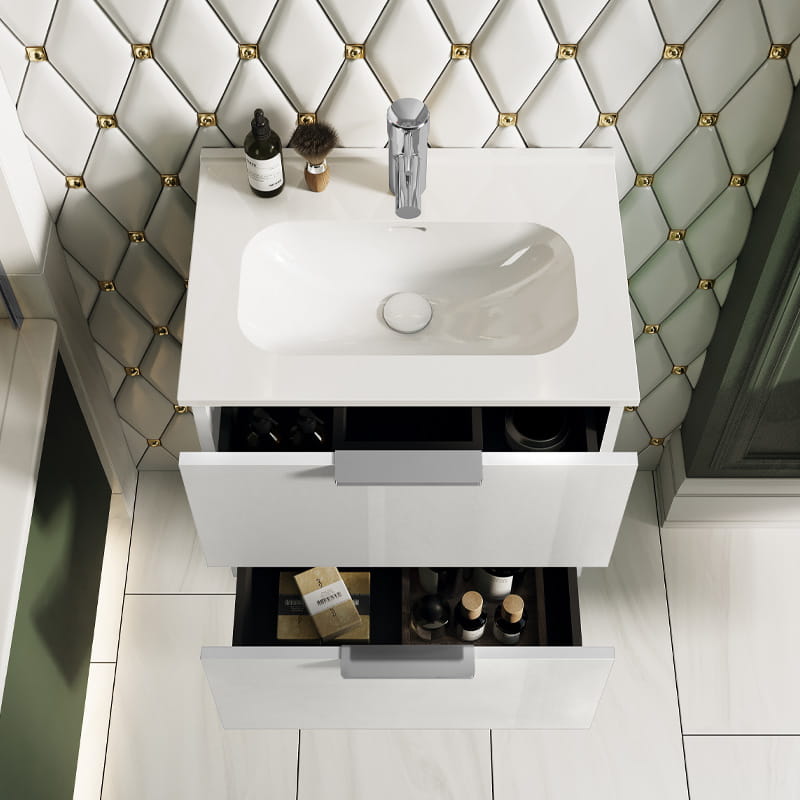 Set łazienkowy składający się z szafki i ceramicznej umywalki.