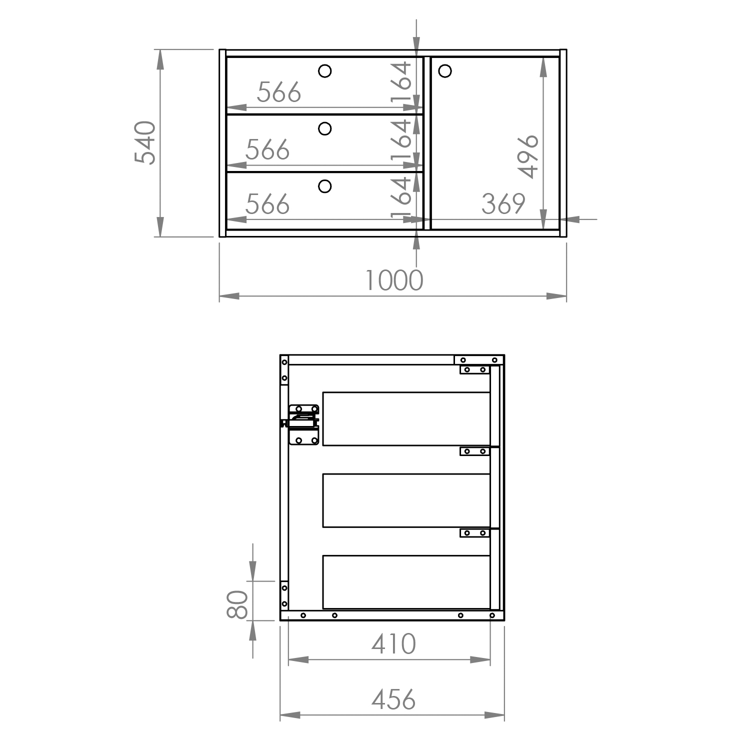 3 szuflady + drzwiczki