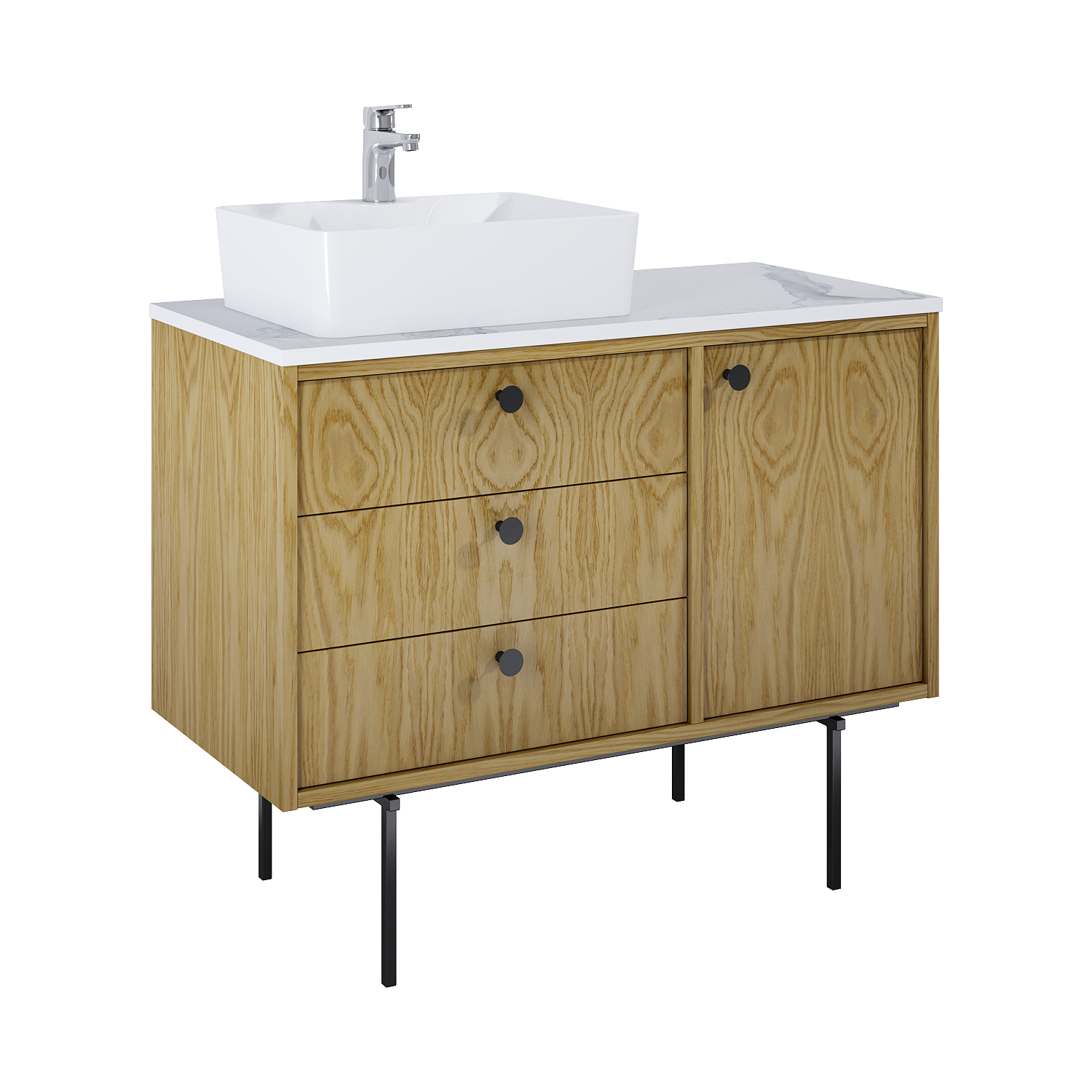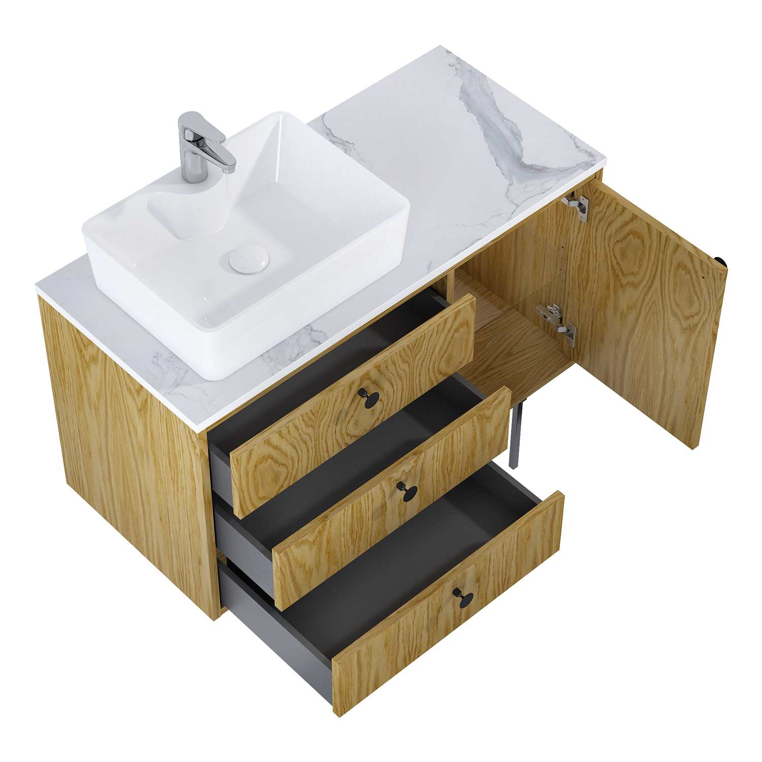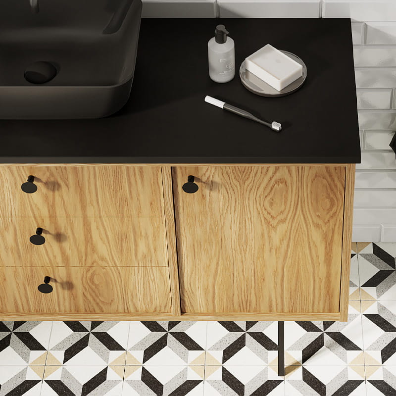 Szafka kompatybilna tylko z blatem. W przypadku wykorzystania jako szafka podumywalkowa konieczność zastosowania syfonu oszczędzającego miejsce oraz umywalki nablatowej. Szafka sprzedawana bez uchwytów. Uchwyty do nabycia osobno – dostępne w różnych wersjach kolorystycznych! Gałka Legacy, Gałka Look, Uchwyt skóra