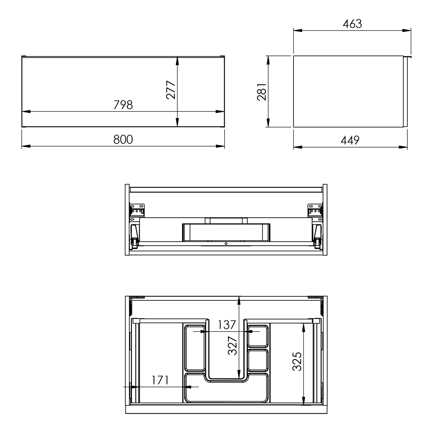 • pełen wysuw ułatwiający dostęp do zawartości szuflad