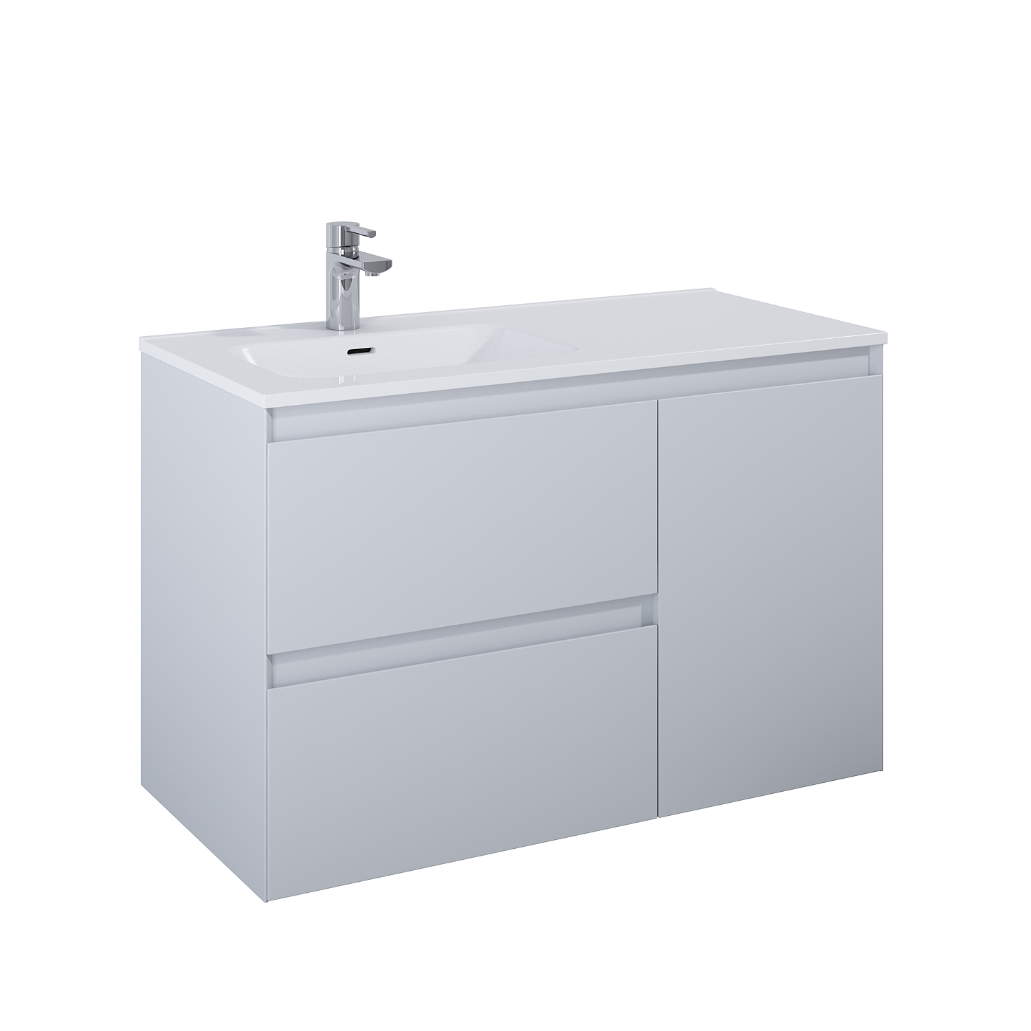 Szafka podumywalkowa – konieczność kompletacji z umywalką meblową lub zestawem blat + umywalka nablatowa. Szafka Split 100 składa się z szafki podumywalkowej 60cm i komody 40cm z koszem cargo.