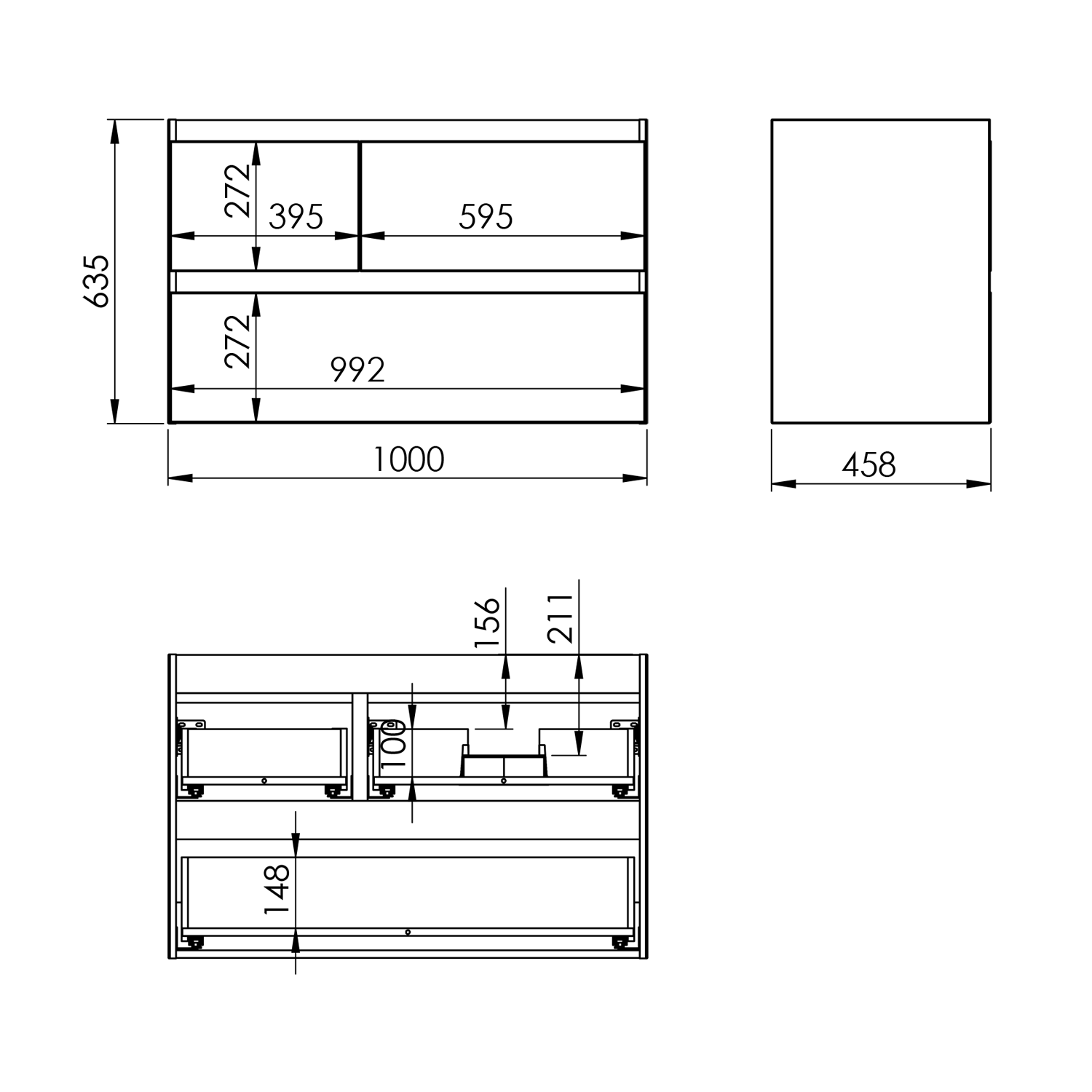 3 szuflady - górne o asymetrycznym kształcie