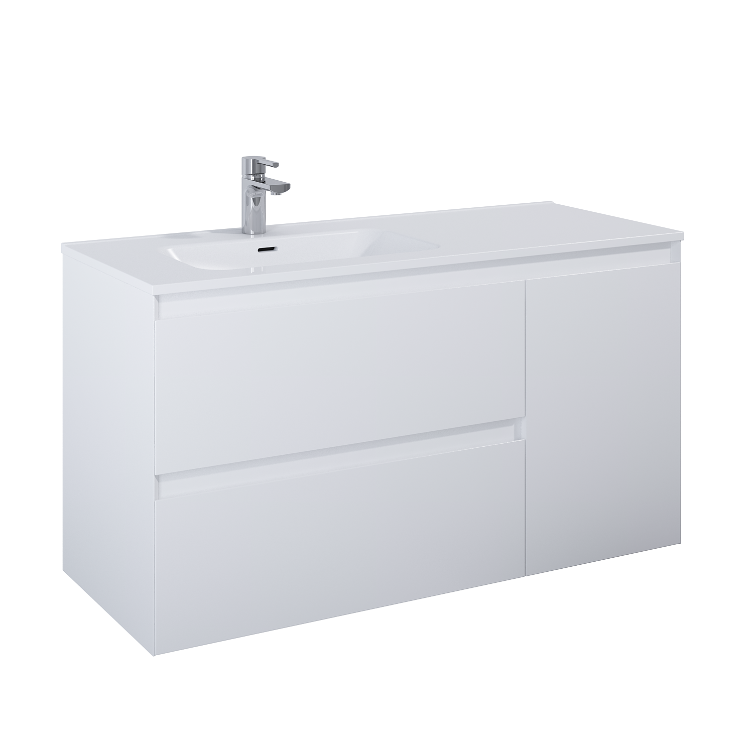 Szafka podumywalkowa – konieczność kompletacji z umywalką meblową lub zestawem blat + umywalka nablatowa. Szafka Split 120 składa się z szafki podumywalkowej 80cm i komody 40cm z koszem cargo