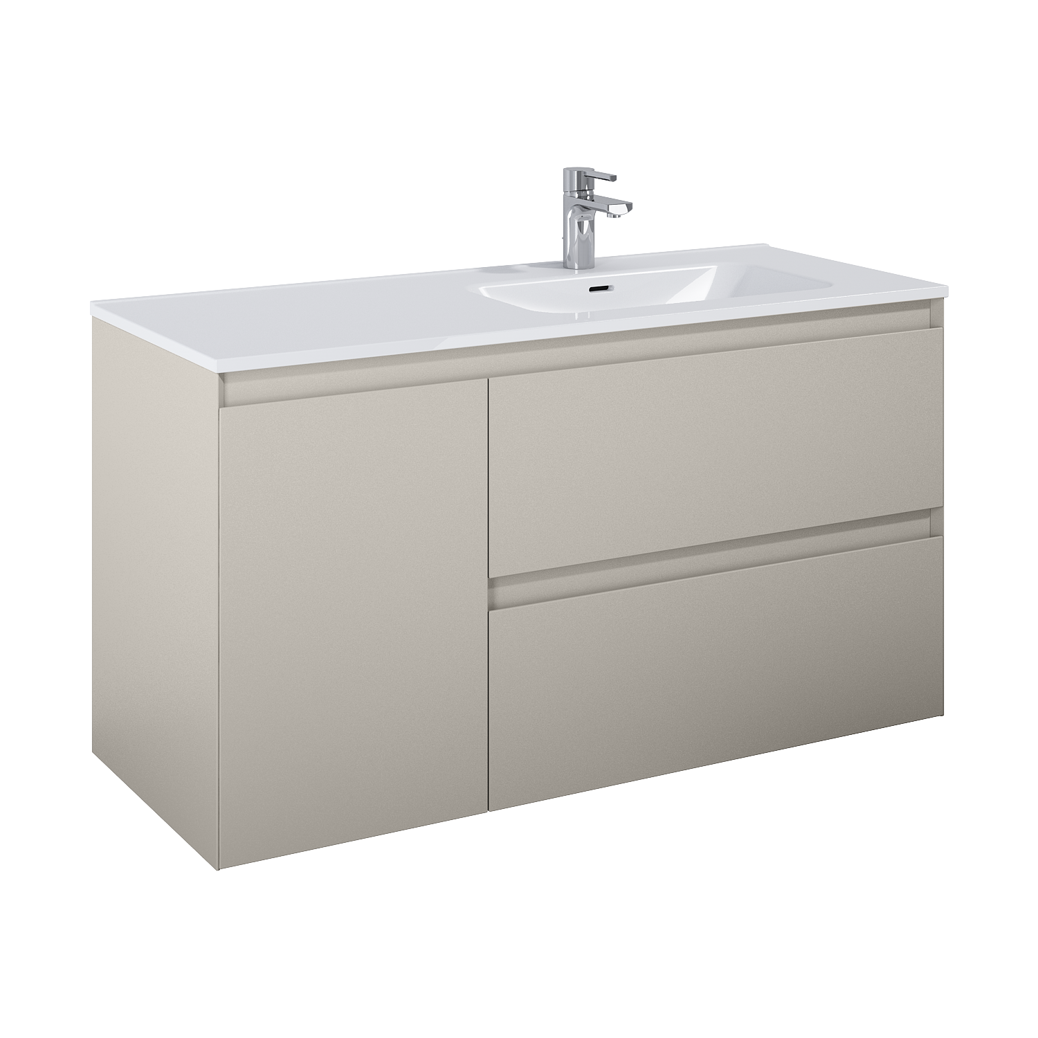 Szafka podumywalkowa – konieczność kompletacji z umywalką meblową lub zestawem blat + umywalka nablatowa. Szafka Split 120 składa się z szafki podumywalkowej 80cm i komody 40cm z koszem cargo