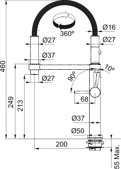 PESCARA 360 to nowoczesna bateria kuchenna wyposażona w funkcję prysznica, uchwyt magnetyczny oraz elastyczny, sprężynowy wąż ruchomej wylewki zapewniający dużą swobodę użytkowania. Dodatkowo baterię wyróżnia: Technologia oszczędzająca wodę Water Saving - dwustopniowa głowica pozwala zmniejszyć zużycie wody o 50%, jednocześnie zapewniając optymalne napowietrzenie strumienia. Elastyczne sitko prysznica, które znacznie ogranicza osadzanie się kamienia w przypadku twardej wody. Wychylenie dźwigni mieszacza do przodu ułatwia sterowanie strumieniem wody, również wtedy, kiedy bateria znajduje się blisko ściany.