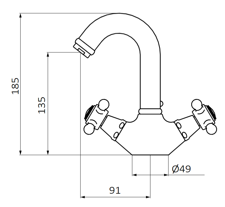 - Wysokość 135 mm do aeratora