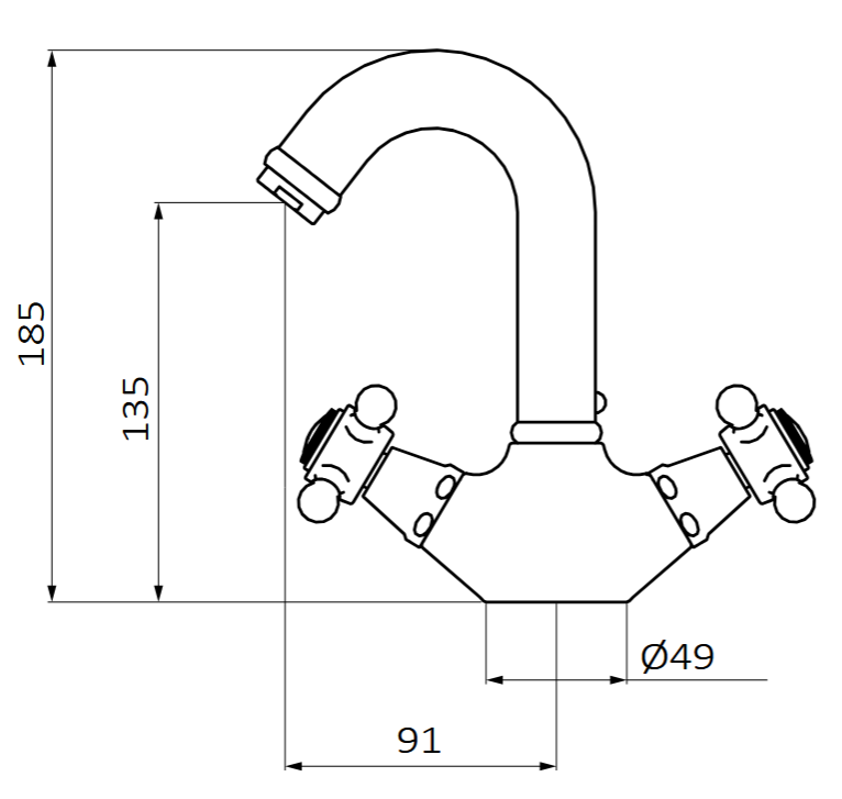 - Wysokość 135 mm do aeratora