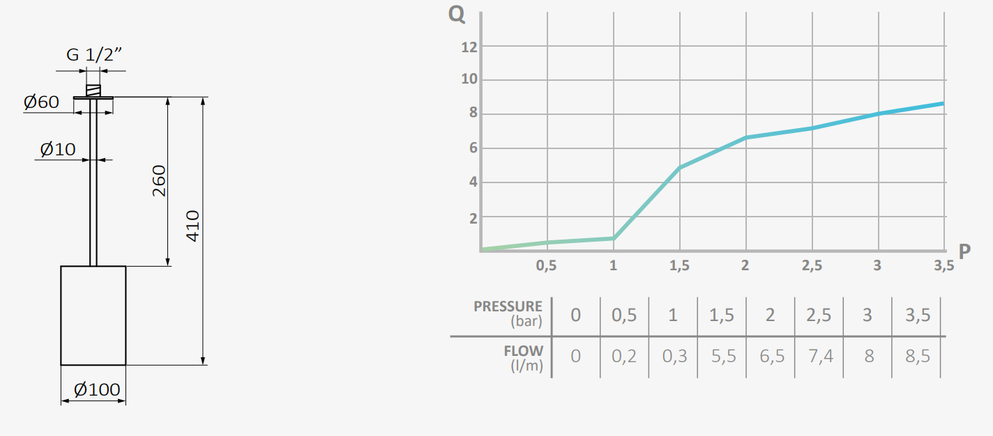 - Wylot wody: ø100 mm