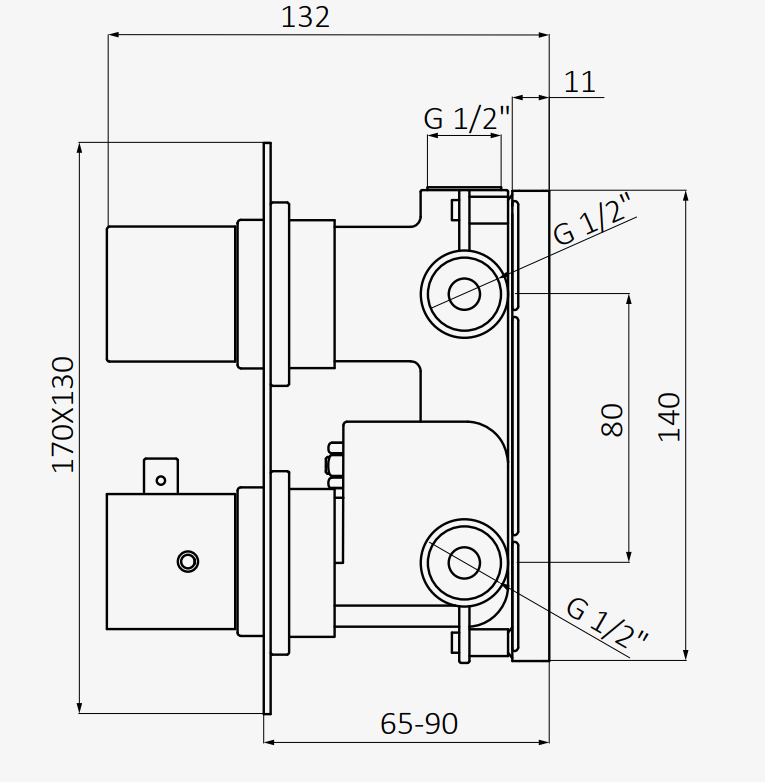 - Głębokość w ścianie min. 65 mm max 90 mm