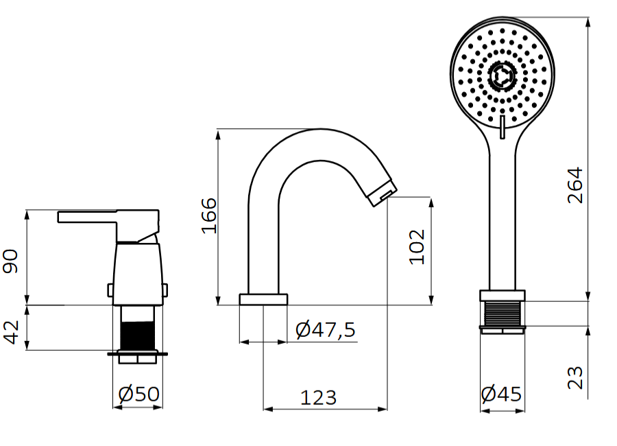 GRB TIME Bateria wannowa 3 otworowa, EterNice® Złoto Szczotkowane PVD. 46232488