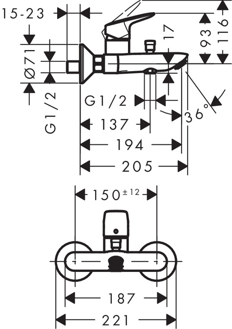 Hansgrohe Logis Jednouchwytowa bateria wannowa, Chrom. 71400000