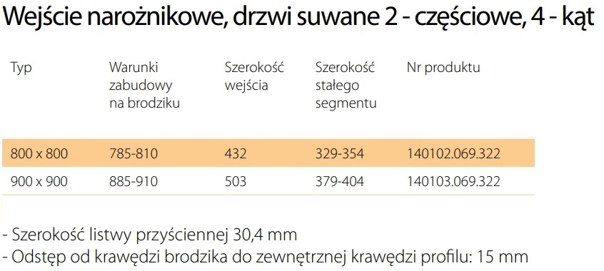 - Bezpieczne szkło hartowane 6 mm w segmentach drzwiowych, 4 mm w segmentach stałych