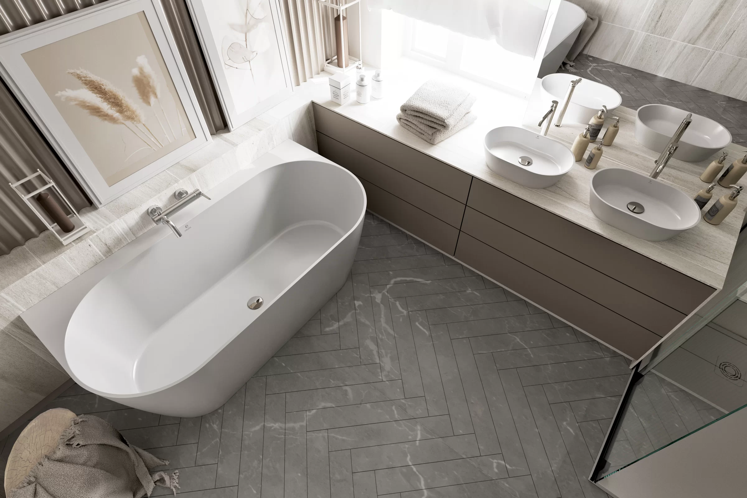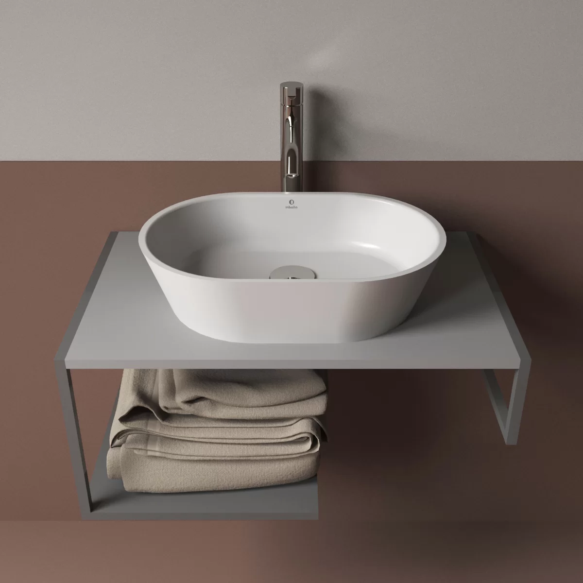 Umywalka nablatowa z kolekcji Bahama jest najbardziej uniwersalnym modelem Inbalia: jest kompaktowa, funkcjonalna, a owalny kształt misy gwarantuje świetne dopasowanie do każdej stylistyki łazienki. Niewielki rozmiar pozwoli Ci zamontować ją tam, gdzie brakuje miejsca – na małej szafce, we wnęce, a nawet w toalecie. Masz dużo przestrzeni na blacie? Zwiększ funkcjonalność swojej łazienki i postaw dwie obok siebie. Umywalka Bahama to świetny wybór – jest odlana z trwałego i odpornego na zarysowania lanego marmuru AQUASTONE®+ , którego łatwość pielęgnacji pozwoli utrzymać umywalkę w codziennej czystości.