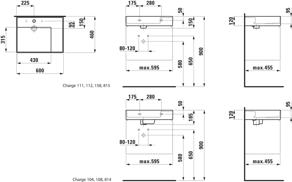 KARTELL • LAUFEN Umywalka ścienna 60x46 cm blat po prawej, 1 otwór na baterię, odpływ liniowy. H8103340001111